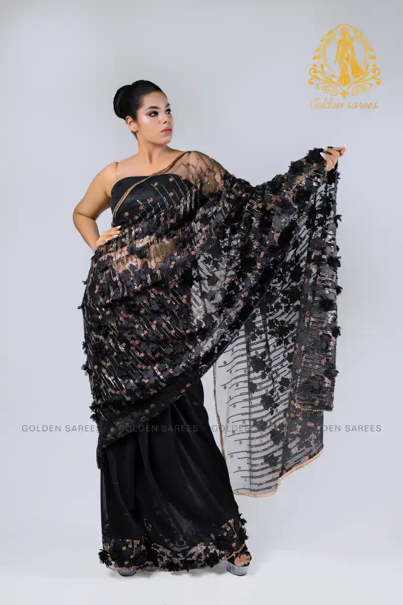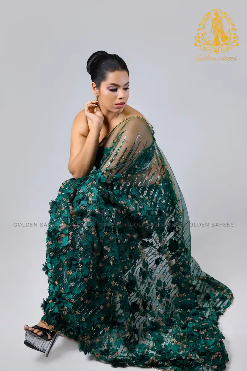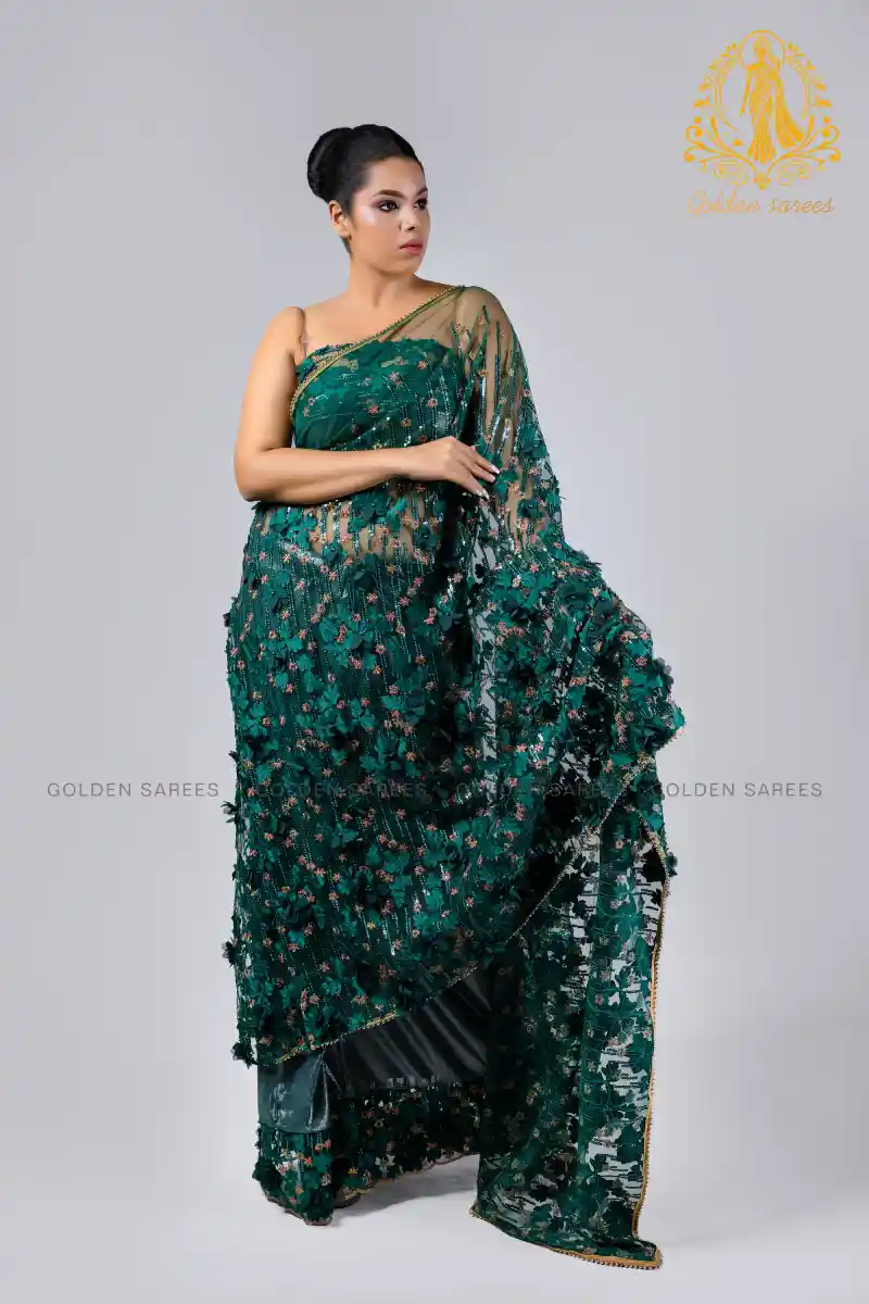 Experience elegance with our 5D Modern Designed Saree, featuring stunning 3D textures and shimmering details that create a luxurious, eye-catching look perfect for any grand occasion.