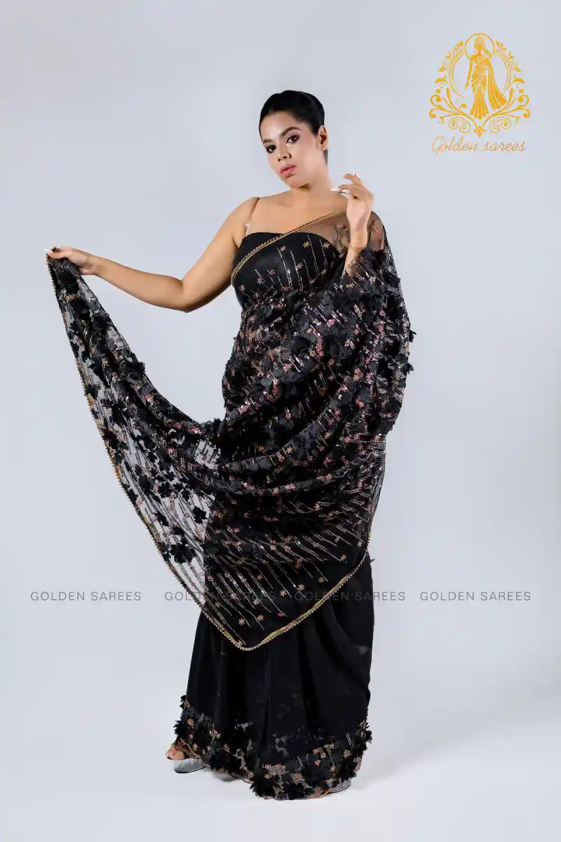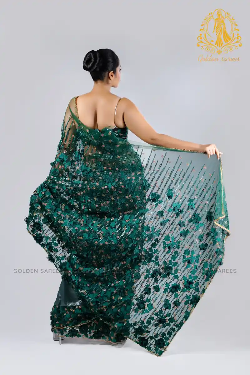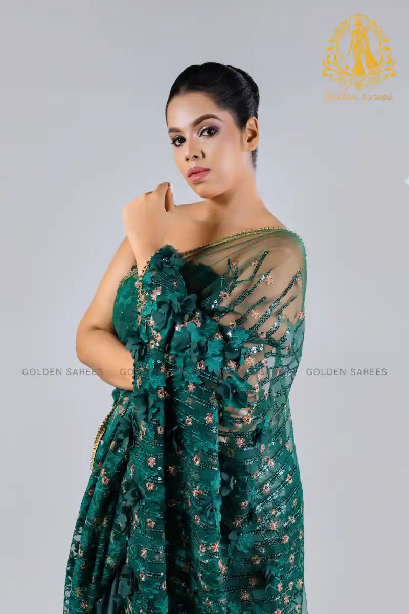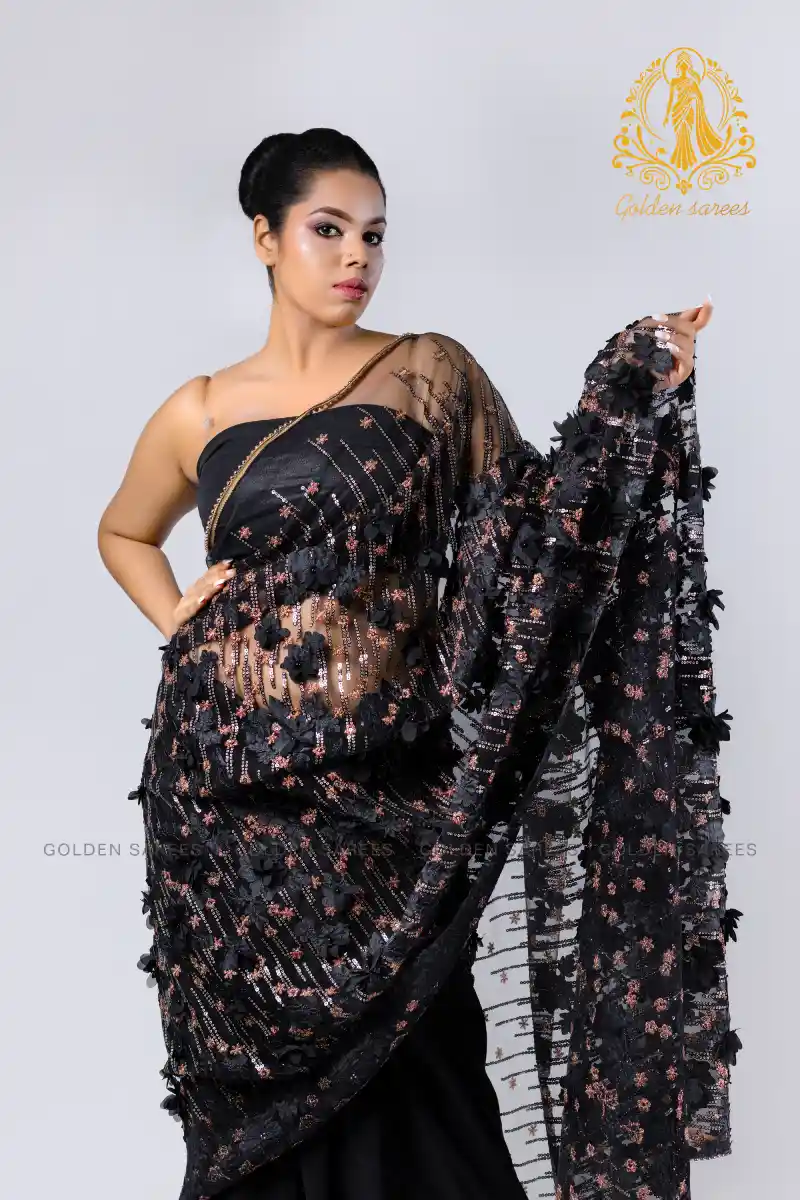 Experience elegance with our 5D Modern Designed Saree, featuring stunning 3D textures and shimmering details that create a luxurious, eye-catching look perfect for any grand occasion.