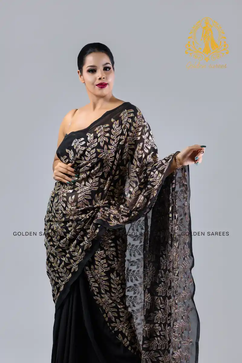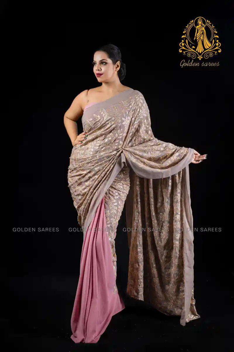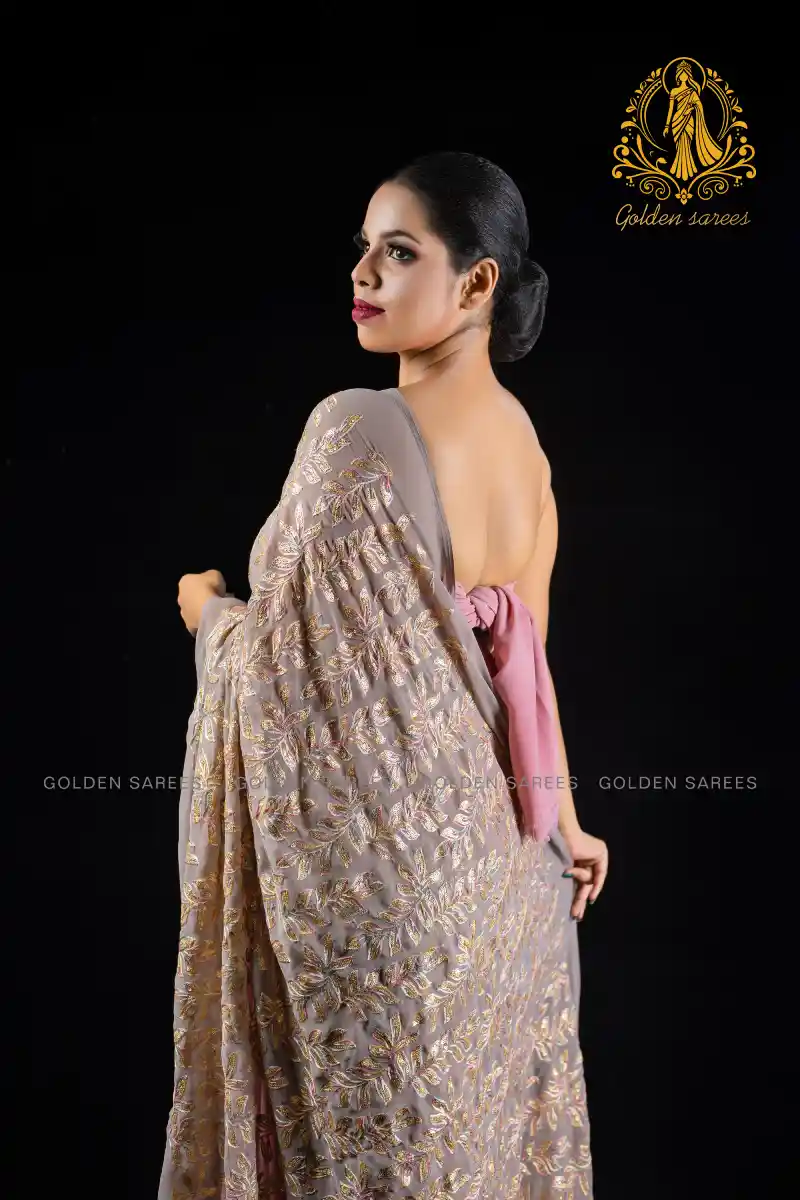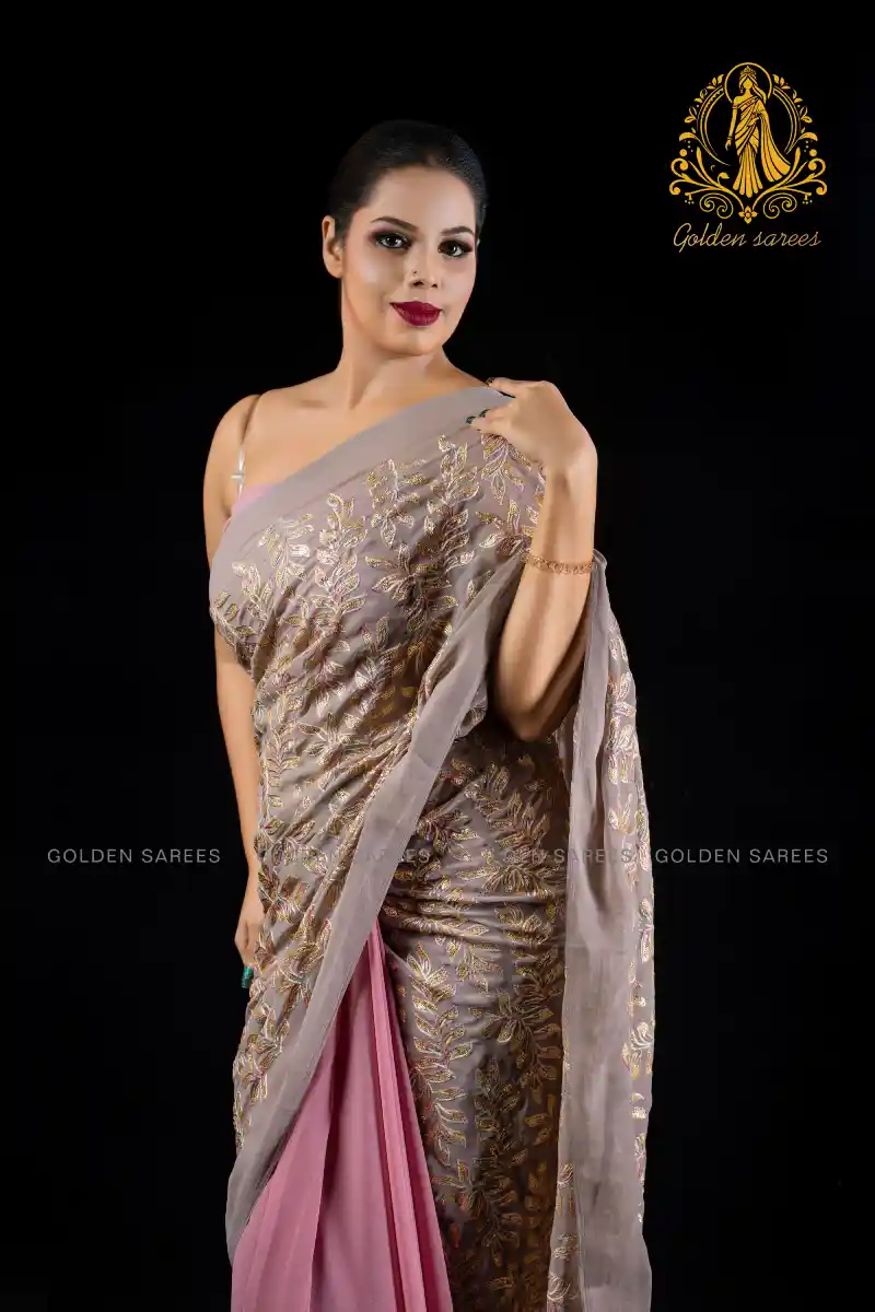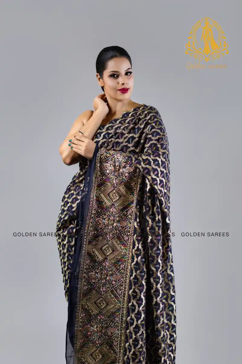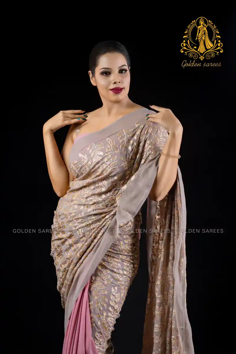 Experience elegance with our Chiffon Embroidered Saree, featuring delicate thread work on lightweight chiffon fabric, offering a graceful drape perfect for festive and special occasions.