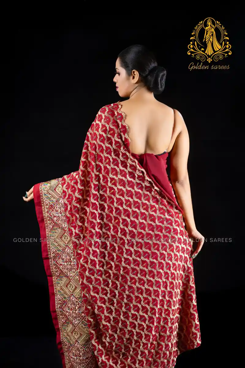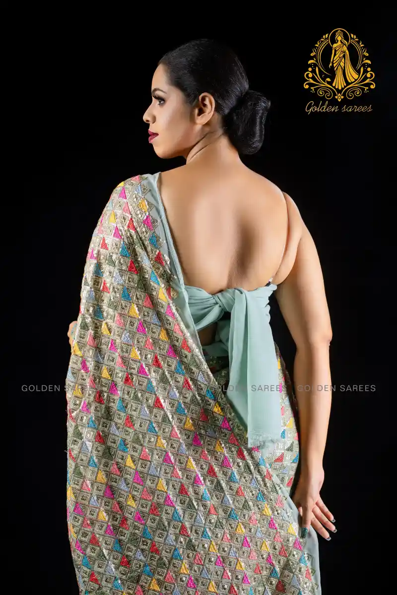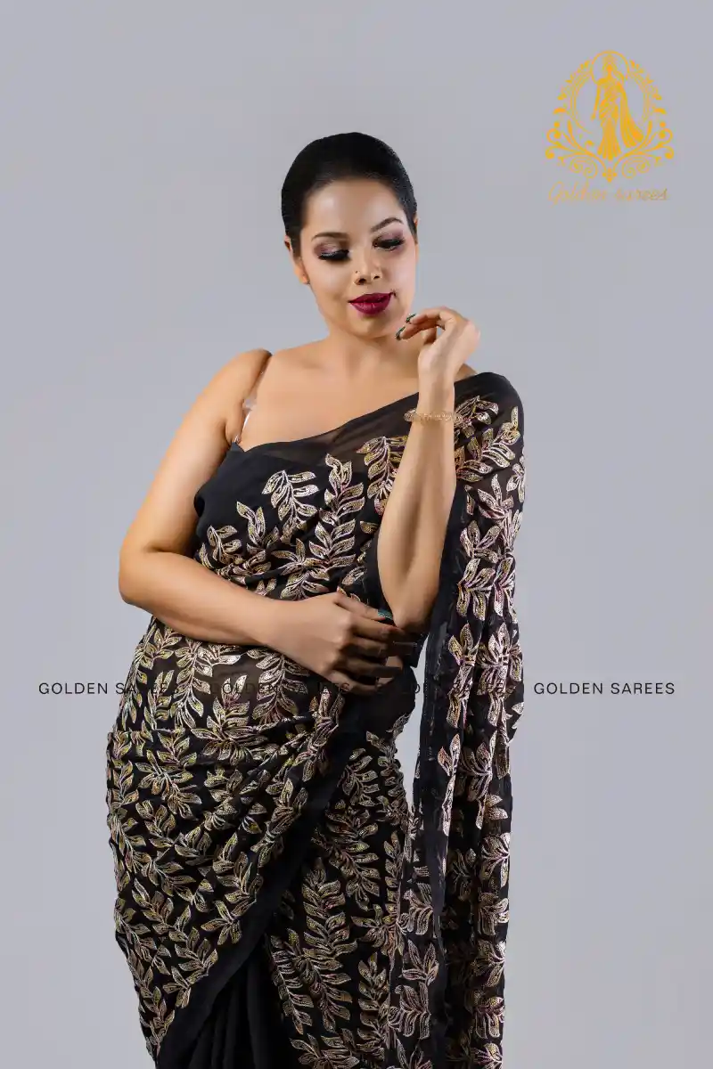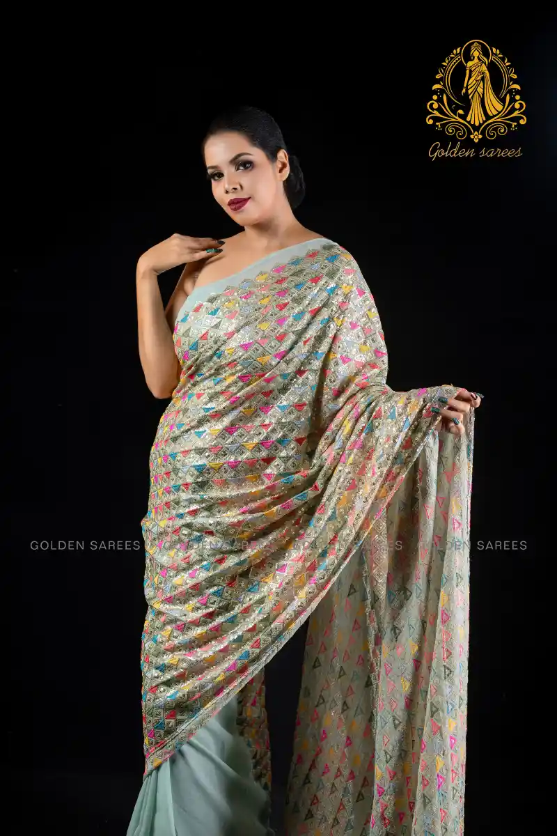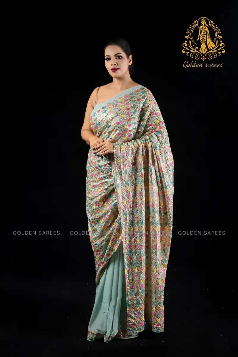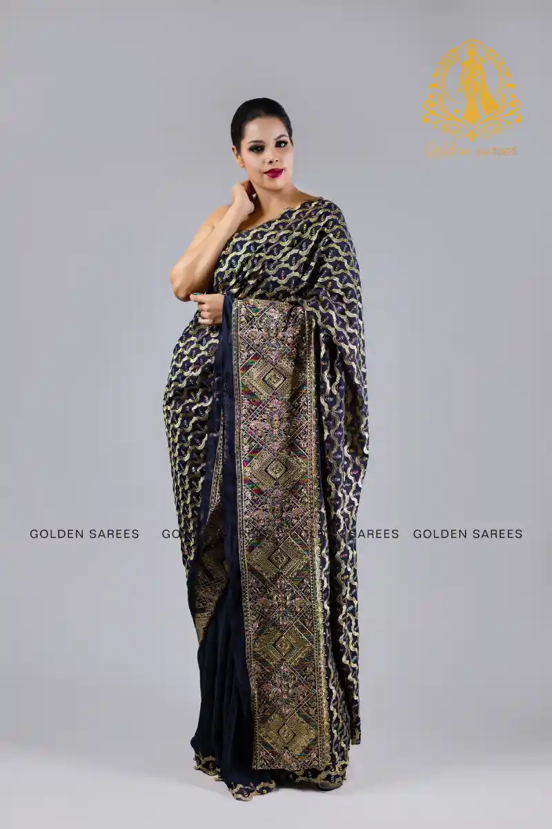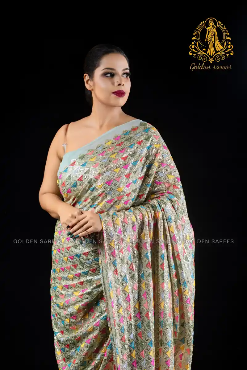 Experience elegance with our Chiffon Embroidered Saree, featuring delicate thread work on lightweight chiffon fabric, offering a graceful drape perfect for festive and special occasions.