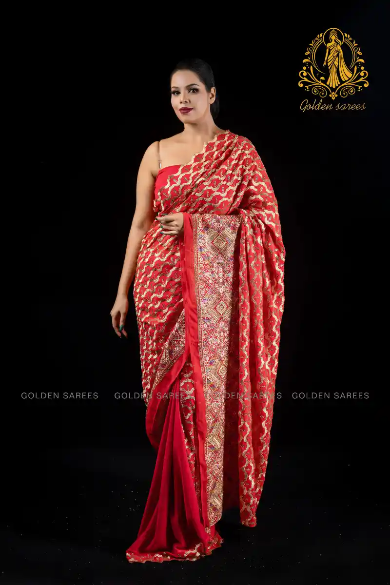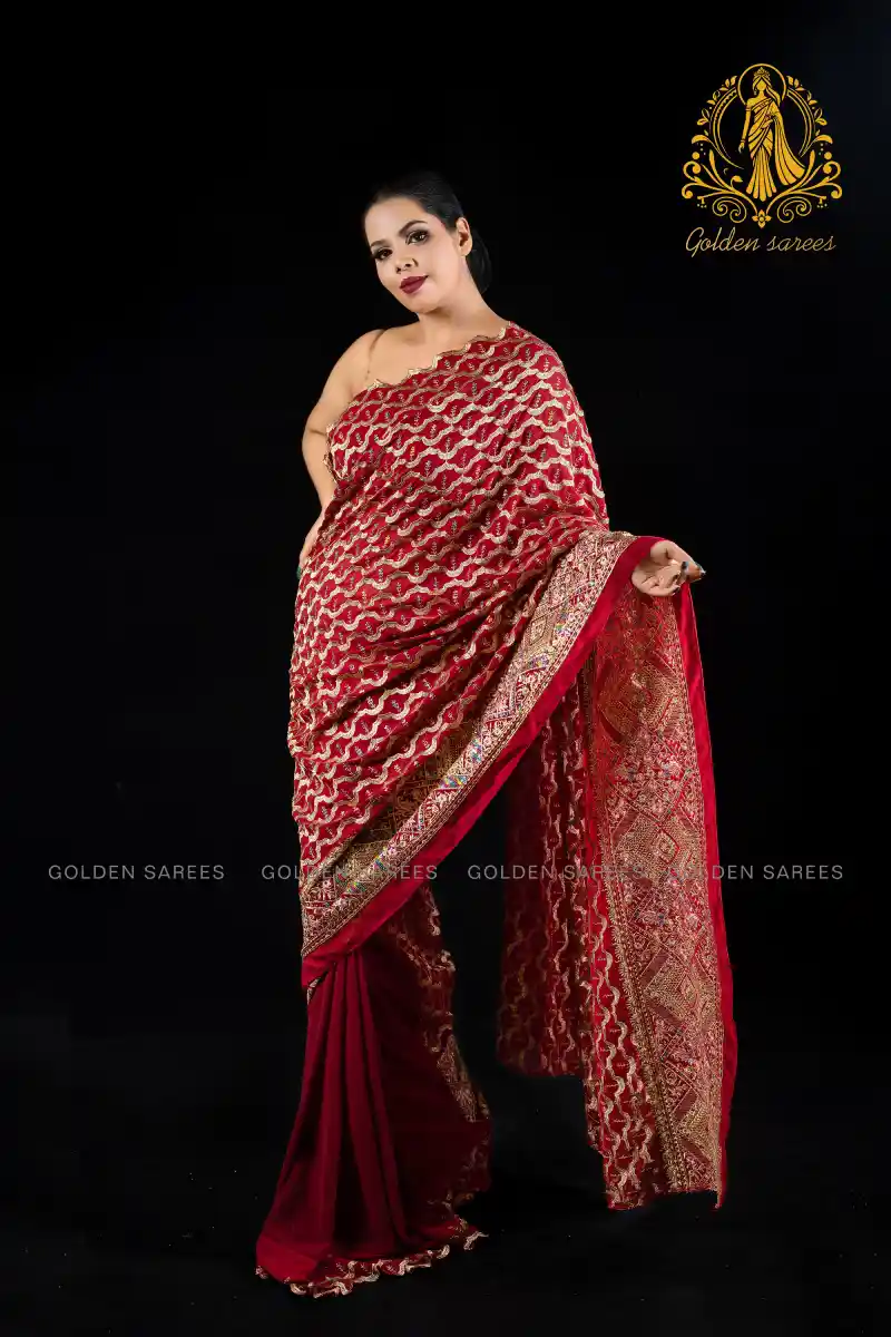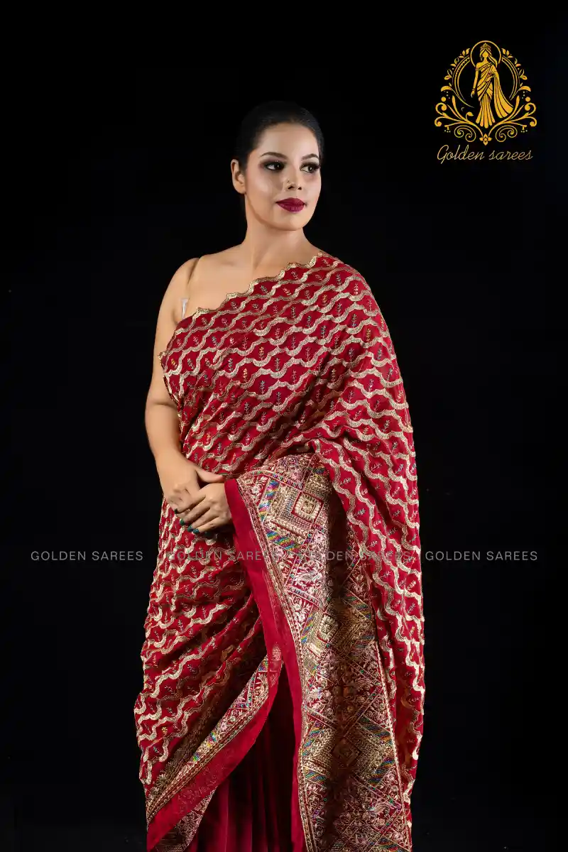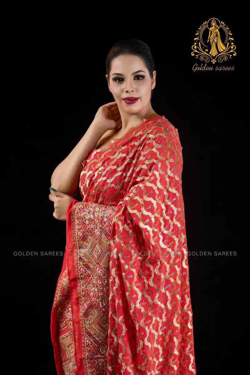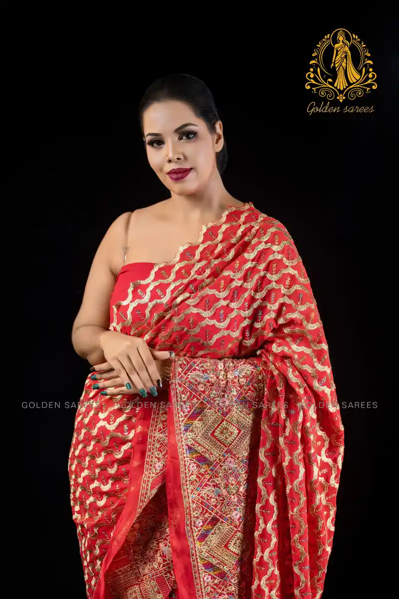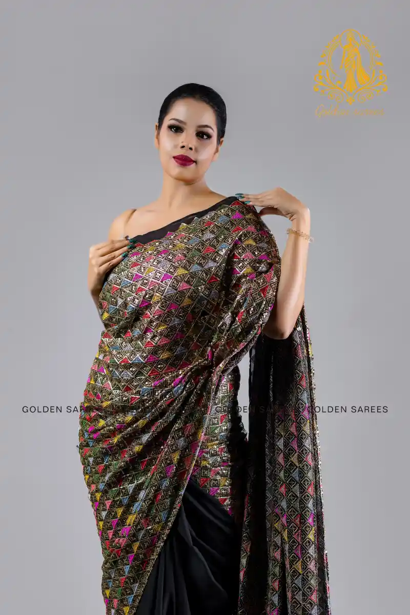 Experience elegance with our Chiffon Embroidered Saree, featuring delicate thread work on lightweight chiffon fabric, offering a graceful drape perfect for festive and special occasions.