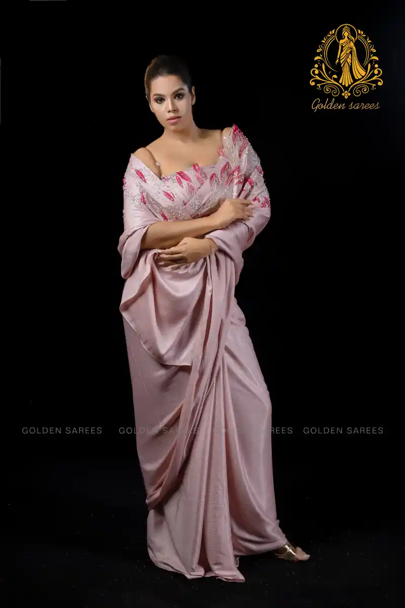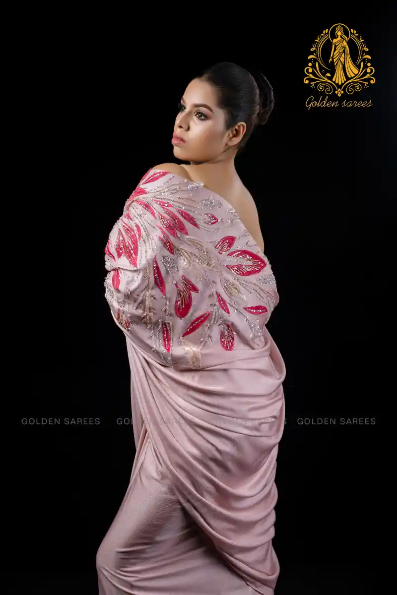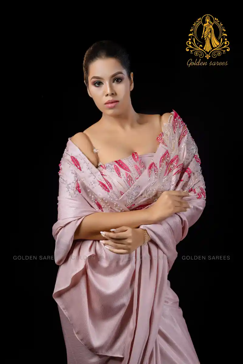 The Modern Hand Work Saree showcases intricate handcrafted details with a contemporary twist. Its elegant patterns and refined finish make it a perfect choice for stylish festive and special occasions.
